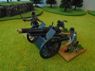 1. Hi MJT, I picked up some old, broken Timpo west point cadets. Plastic oxidisation made them very fragile, so made a mould for pewter figures with separate heads. Added some home-cast Horse Guard heads, and miliput epaulettes, to make the 2nd Battery, Maryland National Guard c.1880 for my imaginary Dominion War. Subsequently, Paul Watson sent me a similar cadet figure in metal, presenting arms, he now has the rammer.